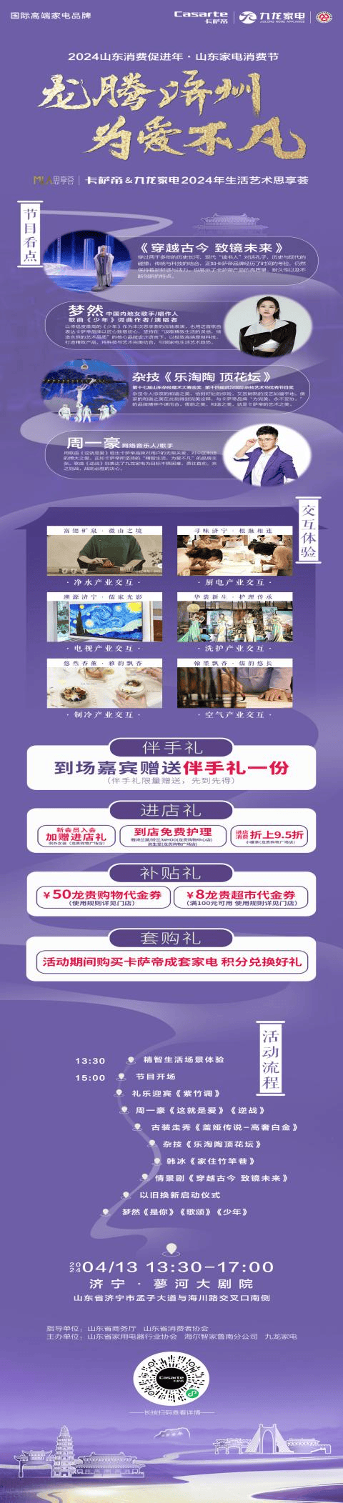阳春四月,春和景明,浪漫与美好也在此时悄然而至。4月13日“龙腾济州·为爱不凡”卡萨帝&九龙家电2024年生活艺术思享荟将在济宁蓼河大剧院举办。