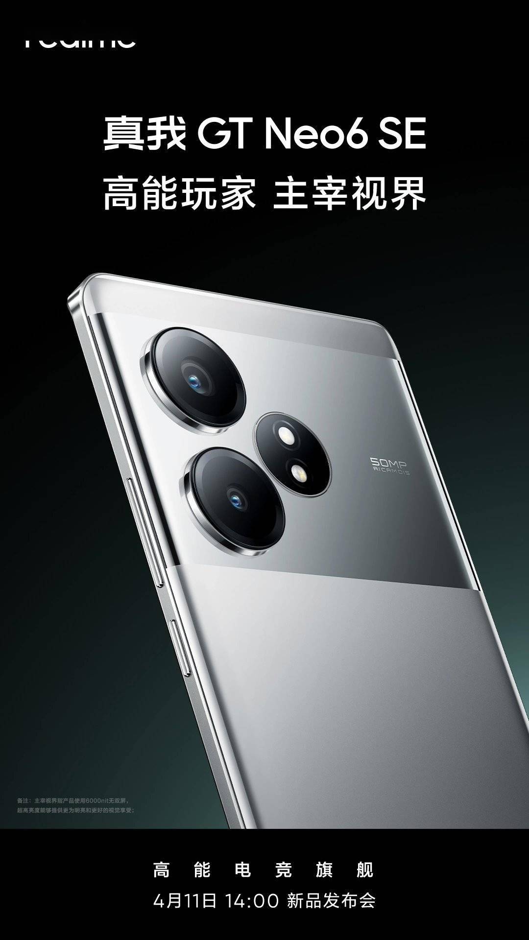 IT之家 4 月 9 日消息,realme真我手机官微今日傍晚宣布,决定将真我 GT Neo6 SE 手机的发布会时间提前,从原定的 4 月 11 日 14 时提前至当日上午 10 时。